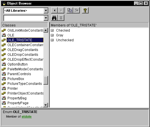Remember, an enumeration is a type of constant, so the values you declare in an Enum statement can't be altered at runtime. Also, remember that you can use Enums for purposes other than supplying a list of valid properties; you can use an enumerated variable anywhere you'd use a normal constant. |