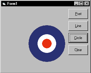 To see how the Circle method works, try the following code. This code draws a bulls-eye on the center of the a form: