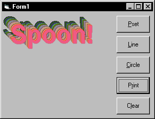Then run the EXE project. Click on one of the buttons that generates graphics on the form, then click on the Cls button. You should be able to see that the Cls method clears all the graphics on the form.