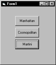 If your control can take the focus, then it should graphically display that is has the focus. Standard Windows controls show that they have the focus by drawing a thin, dotted line around themselves. In Figure 9.8, the command button with the caption "Martini" has the focus.